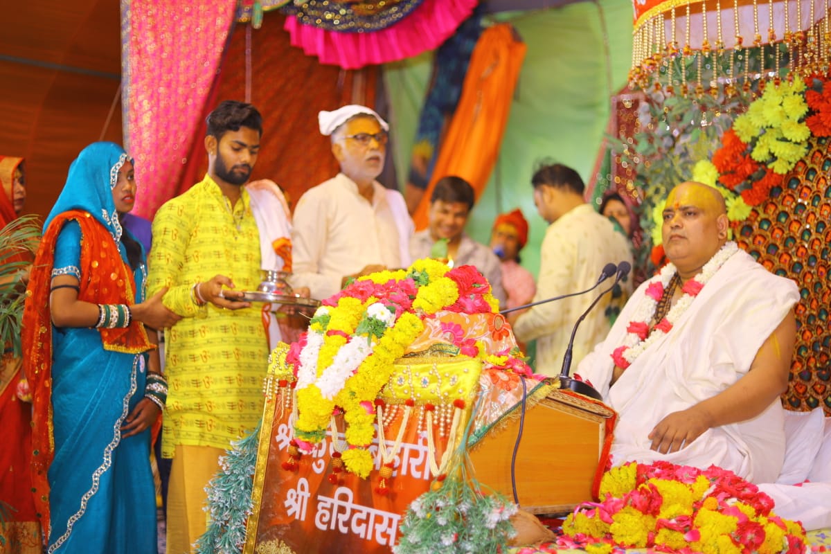 प्रात:कालीन बेला में यज्ञाचार्य अतुल लिटौरिया एवं उप यज्ञाचार्य रामनरेश लिटौरिया, मधुसूदन तिवारी,प्रकाशचंद्र उदैनिया,योगेश मिश्रा,पवन पाठक एवं सिद्धगोपाल द्विवेदी ने विधि विधान से वेदिका पूजन कराया तथा यजमानों ने यज्ञ में आहुतियां डलवायीं। सायंकालीन बेला में भागवत का मूलपाठ कर रहे आचार्य रामलखन उपाध्याय एवं पं.अनिल तिवारी ने पुराण पूजन एवं व्यास पीठ का पूजन कराया तदुपरांत पारीछित श्रीमती विभा मृदुल तिवारी,ममता अजय अग्रवाल, दीर्घा विजय चौधरी, गीता राजेंद्र अग्रवाल, मुस्कान धीरज कुशवाहा, रमा आशाराम कुशवाहा, राजेश्वरी कोमल सिंह सिजरिया, जयकुंवर लालाराम कुशवाहा, सुनीता रामसिंह, फूलवती बृजमोहन साहू,रज़नी मारुति दीक्षित एवं गिरवरधारी जू मंदिर के पुजारी मदनमोहन दास एवं श्रीधामवृंदावन से पधारे राधाबल्लभ ने महाराजश्री का माल्यार्पण कर श्रीमद भागवत पुराण की आरती उतारी।