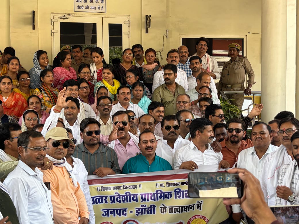 झांसी। उत्तर प्रदेशीय प्राथमिक शिक्षक संघ जिला झांसी जिलाध्यक्ष अजय यादव की नेतृत्व में प्रदेशीय आह्वान पर 1 मई को बीएसए कार्यालय झांसी में धरना-प्रदर्शन में शिक्षकों की विभिन्न ज्वलंत समस्याओं मुख्य रूप से पुरानी पेंशन, विशिष्ट बीटीसी 2004, बीटीसी 2001 और 2004 बैच के शिक्षकों के लिए पुरानी पेंशन बहाली, शीघ्र पदोन्नति, प्रोन्नत वेतनमान, मानव संपदा पोर्टल पर अध्यापकों की अपडेट होना, छात्रों का प्रवेश के समय आधार कार्ड अनिवार्य न किया जाए, ग्रीष्मकाल में हीटवेव को ध्यान में रखते हुए विद्यालय समय में परिवर्तन जैसी मांगों को लेकर धरना दिया और फिर जिलाधिकारी झांसी के माध्यम से माननीय मुख्यमंत्री को ज्ञापन दिया गया