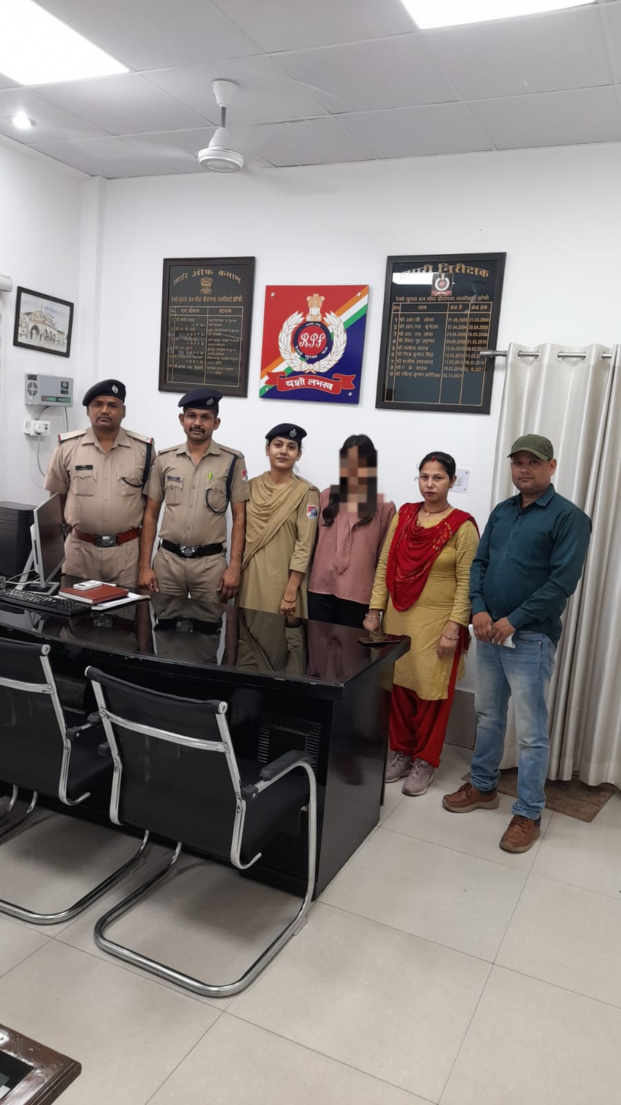 इसके बाद उप निरीक्षक सतीश व महिला कांस्टेबल मंजू यादव के द्वारा स्टेशन एरिया को सर्च किया गया तो उक्त नाबालिक लड़की काल्पनिक नाम अवंतिका पुत्री भागवत प्रसाद निवासी गांव पौसरा थाना आदर्श नगर जिला बिलासपुर छत्तीसगढ़ सामान्य प्रतीक्षालय में मिली। फोटो से मिलान किया तो वह वही लड़की थी जिसकी सूचना दी गई थी। लड़की को समझा बूझकर महिला कांस्टेबल मंजू यादव के उपस्थिति में पोस्ट पर लाकर महिला कांस्टेबल बबीता कुमारी व महिला कांस्टेबल रौनक शिवहरे की देखरेख में रखा गया। इसके बाद लड़की को आवश्यक कार्रवाई कर चाइल्ड लाइन के सुपुर्द कर दिया गया।