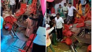 कुछ ही देर में शादी का पंडाल जंग के मैदान में बदल गया। इस दौरान दोनों ओर से जमकर कुर्सियां चलीं। सामान बिखर गया और माहौल काफी तनावपूर्ण हो गया। काफी देर तक हंगामा चलता रहा और लोग बीच में ही खाना छोड़ कर उठ गये। देखते ही देखते विवाह समारोह अस्त-व्यस्त हो गया। कुछ लोगों ने हस्तक्षेप कर मामला शांत कराया और बकाया रस्में पूरी की गई।
