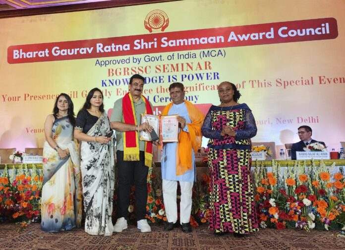 नई दिल्ली। संघर्ष सेवा समिति जिसके संस्थापक डॉ० संदीप सरावगी के झाँसी जनपद और आसपास के क्षेत्र में समाजसेवी कार्यों को देखते हुए अब तक राष्ट्रीय, अंतर्राष्ट्रीय, राज्य और क्षेत्रीय स्तर के सैकड़ों अवॉर्डों से सम्मानित किया जा चुका है। डॉ० संदीप के कार्यों को देखते हुए देश की राजधानी दिल्ली चाणक्यपुरी स्थित दा अशोक होटल में डॉ० संदीप को भारत गौरव रत्न श्री सम्मान अवार्ड से विभूषित किया गया।