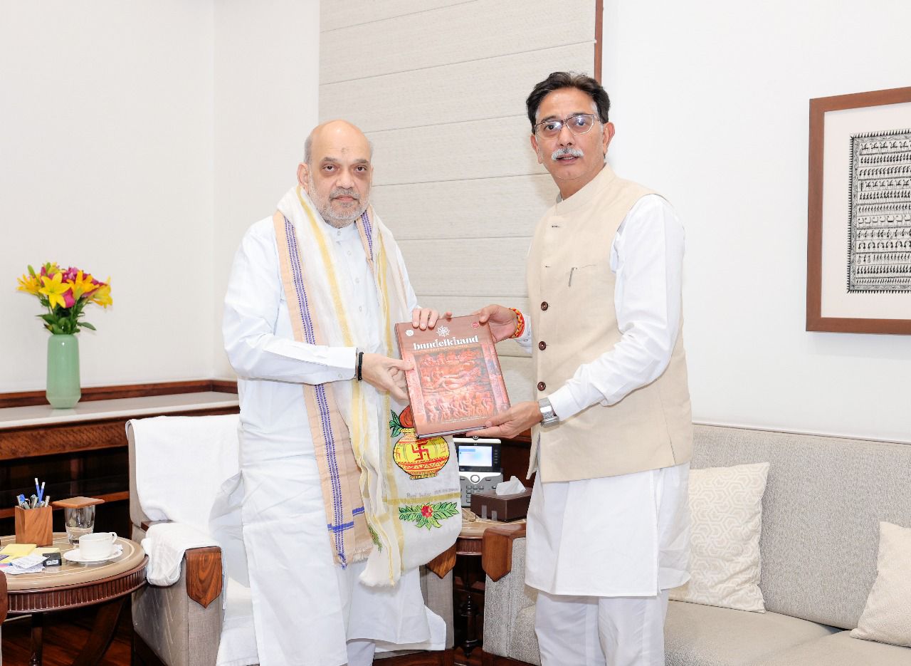 इसके पश्चात सांसद श्री शर्मा ने गृहमंत्री अमित शाह से भेंट की और उन्हें भी बुंदेलखंड की सांस्कृतिक विरासत पर केंद्रित पुस्तक भेंट तथा बुंदेलखंड की सुप्रसिद्ध लोक कला चितेरी पर आधारित अंग वस्त्र भेंट कर की। इस दौरान उन्होंने गृह मंत्री को बुंदेलखंड के सामाजिक, भाषाई और सांस्कृतिक स्वरूप की जानकारी देते हुए बताया कि आजादी के बाद बुंदेलखंड क्षेत्र को 35 देशीय रियासतों को मिलाकर विंध्य प्रदेश के रूप में संगठित किया गया था जो लगभग आठ वर्षों तक अस्तित्व में रहा बाद में 1956 में इसे पुनर्गठित करते हुए सात जनपदों को उत्तर प्रदेश और सात जनपदों को मध्य प्रदेश में शामिल कर दिया गया लेकिन आज भी बुंदेलखंड एक सांस्कृतिक और भाषाई रूप से संगठित एवं जीवंत क्षेत्र के रूप में स्थापित है।