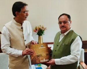 झांसी। सांसद अनुराग शर्मा ने आज भारतीय जनता पार्टी के राष्ट्रीय अध्यक्ष एवं देश के केंद्रीय स्वास्थ्य मंत्री जे.पी. नड्डा तथा गृहमंत्री एवं भारतीय राजनीति के चाणक्य अमित शाह से सौजन्य भेंट कर बुंदेलखंड की संस्कृति, भाषा और स्वास्थ्य सुविधाओं से जुड़े महत्वपूर्ण विषयों पर चर्चा की और उनका ध्यान इन जनहित के मुद्दों पर केंद्रित कराया