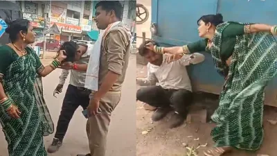 ललितपुर। महिला अपने पति को बीच चौराहे पर पीट रही थी। पास में खड़े लोग इस पूरी घटना को देख रहे थे। पुलिस की टीम भी वहां मौजूद थी। इन सब लोगों से बेखबर महिला अपने पति को पीटती रही।