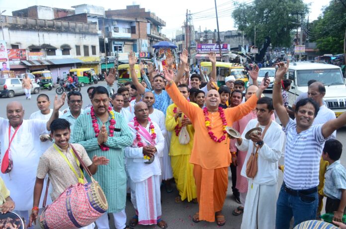 झाँसी। अंतरराष्ट्रीय कृष्ण भावनामृत संघ (इस्कान) झाँसी द्वारा आज भव्य हरिनाम संकीर्तन यात्रा के साथ इस्काॅन मंदिर में जन्माष्टमी महोत्सव एवं श्रीमद्भागवत कथा का शुभारंभ हुआ।