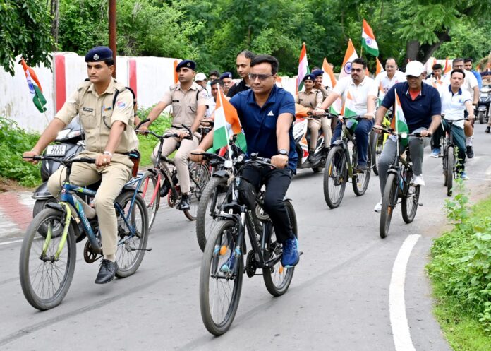 झांसी। भारत सरकार के निर्देशों के अनुपालन में तथा मंडल रेल प्रबंधक श्री दीपक कुमार सिन्हा के मार्गदर्शन में, मंडल खेलकूद संघ एवं रेलवे सुरक्षा बल (आरपीएफ) झाँसी मंडल द्वारा बुधवार को “हर घर तिरंगा” मुहिम के अंतर्गत एक विशेष साइकिल एवं मोटर बाइक रैली का आयोजन किया गया।