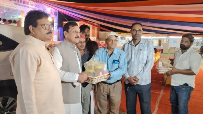 श्री सिंघल ने कहा कि खादी के क्षेत्र में हमारी सरकार द्वारा संराहनीय कार्य किया गया है, खादी बन्द कारखानों को चालू कराया गया है, जिससे खादी के उत्पादन एंव ब्रिकी में आशातीत वृद्धि हुयी है। सदस्य विधान परिषद द्वारा कहा गया कि खादी वस्त्र नही विचार है, खादी के कपडे पहने से शरीर में कोई स्किन सम्बन्धित कोई रोग नही होता क्योकि खादी ही ऐसा वस्त्र है जो गर्मी में ठण्डाता है और सर्दी में गरमाता है, भारत को अत्मनिर्भर बनाने में ग्रामीण कुटीर उद्योगो का महत्वपूर्ण योगदान है। इस अवसर पर रामकिशोर गुप्ता परिक्षेत्रीय ग्रामोद्योग अधिकारी द्वारा उ०प्र०खादी ग्रामोद्योग बोर्ड एंव उ०प्र० माटीकला बोर्ड द्वारा संचालित योजनाओं की विस्तृत जानकारी दी गयी।