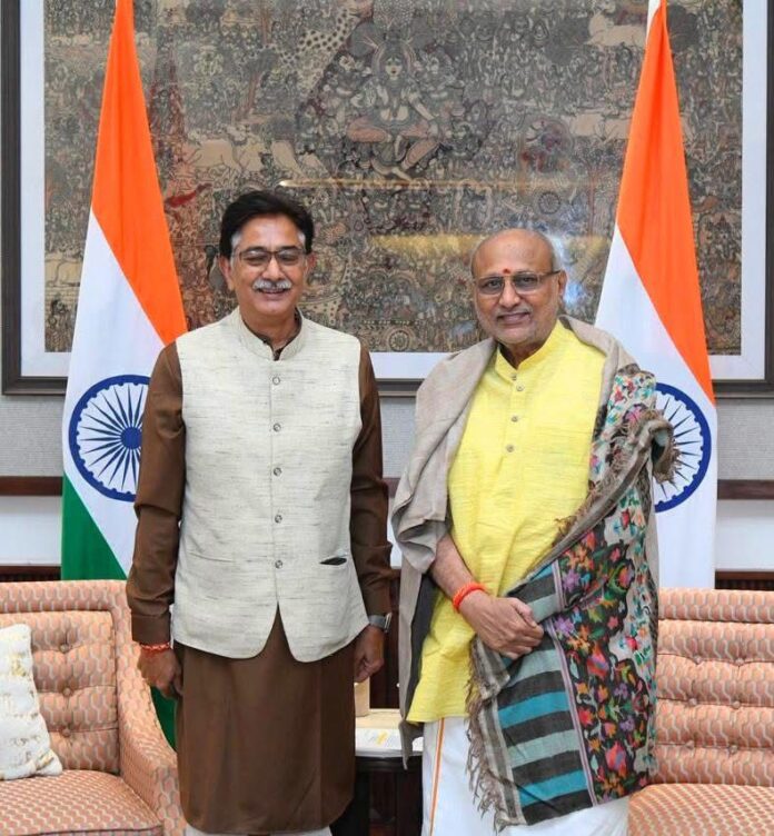 नई दिल्ली। झांसी-ललितपुर लोकसभा क्षेत्र के सांसद अनुराग शर्मा ने भारत गणराज्य के उपराष्ट्रपति सी. पी. राधाकृष्णन से उनके नई दिल्ली स्थित आवास पर शिष्टाचार भेंट की और उनके स्नेहपूर्ण मार्गदर्शन एवं प्रेरक विचारों का लाभ प्राप्त किया। बैठक का माहौल अत्यंत सौहार्दपूर्ण और प्रेरणादायक रहा।