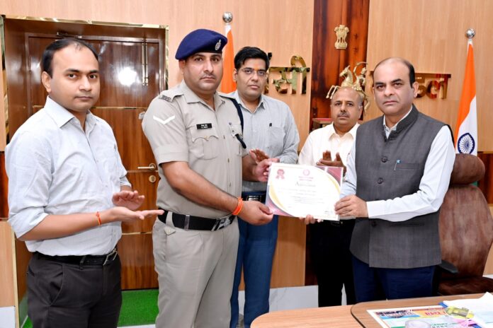 झांसी। रेलवे सुरक्षा बल पोस्ट ग्वालियर , स्टेशन ड्यूटी पर तैनात कांस्टेबल कन्हैया लाल मीना को उनकी तत्परता, कार्य के प्रति समर्पण तथा साहसिक कार्य के लिए मंडल रेल प्रबंधक अनिरुद्ध कुमार द्वारा ‘एम्प्लॉई ऑफ़ द मंथ’ पुरस्कार से सम्मानित किया गया। श्री मीना को ₹2000/- की नकद राशि और एक प्रमाण पत्र देकर सम्मानित किया गया।
