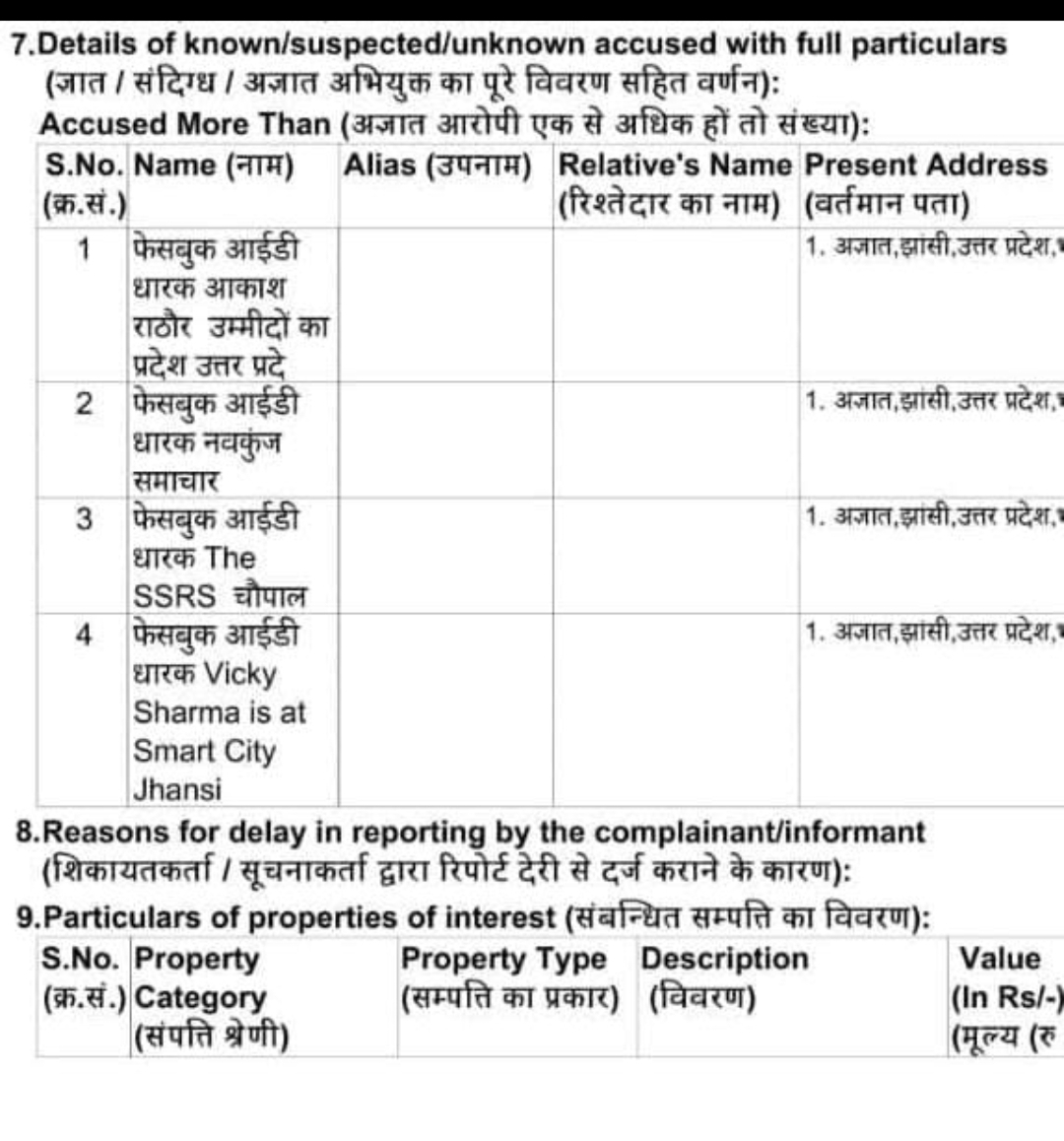 बबीना क्षेत्र से विधायक राजीव सिंह पारीछा ने बबीना थाना में मुकदमा दर्ज कराते हुए बताया कि बबीना विधान सभा के किसानों की जमीन बीड़ा में जाने पर किसानों को मुआवजा देर से मिलने पर उनके द्वारा मुख्यमंत्री संबोधित ज्ञापन उन्हें प्रेषित किया गया था। जिसे आपराधिक षडयंत्र के तहत तोड़ मरोड़ कर बबीना विधायक राजीव सिंह तथा उत्तर प्रदेश सरकार की छवि धूमिल करने के लिए फेसबुक आई डी आकाश राठौर, फेसबुक आई डी धारक नवकुंज समाचार, फेसबुक आई डी धारक द एसएस आर चौपाल, फेसबुक आई डी विक्की शर्मा झांसी स्मार्ट सिटी झांसी पर प्रकाशित की। पुलिस ने सभी के खिलाफ गंभीर धाराओं में मामला दर्ज कर लिया है।