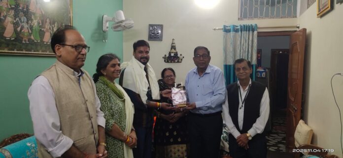 परियोजना के अंतर्गत साक्षात्कार समिति में पधारी वरिष्ठ प्राध्यापक प्रो. अल्पना त्रिवेदी, परियोजना प्रभारी डॉ. शिवम शर्मा, सहयोगी विजय कुमार राजवंशी एवं सुश्री वैशाली गुलेरिया को निहाल चंद्र शिवहरे उनकी धर्म पत्नी मालती शिवहरे एवं सत्य सनातन संस्कृति मंच न्यास के राष्ट्रीय अध्यक्ष श्याम शरण नायक सत्य ने विद्वान अतिथियों को अंगवस्त्र भेंट कर सम्मानित किया।