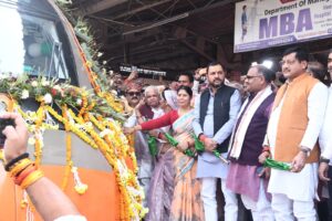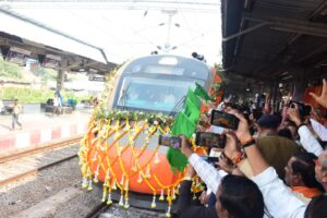 बांदा बांदा स्टेशन पर ट्रेन के आगमन पर उत्साह और गर्व का वातावरण रहा। इस अवसर पर स्थानीय कलाकारों द्वारा सांस्कृतिक प्रस्तुतियाँ दी गईं, जिनमें बुंदेलखंड की लोक परंपरा की मनमोहक झलक दिखाई दी। बड़ी संख्या में नागरिक, स्कूली बच्चे और रेलवे अधिकारी कार्यक्रम में उपस्थित रहे। स्टेशन परिसर देशभक्ति और उल्लास से सराबोर रहा। इस अवसर पर वंदे भारत एक्सप्रेस पर आधारित विभिन्न प्रतियोगिताओं के विजेता छात्र – छात्राओं को पुरस्कृत किया गया।राज्य मंत्री, उत्तर प्रदेश सरकार रामकेश निषाद ने कहा कि वंदे भारत एक्सप्रेस का बांदा स्टेशन पर ठहराव, इस क्षेत्र के लिए एक ऐतिहासिक उपलब्धि है। इससे बुंदेलखंड का यह महत्वपूर्ण जिला अब प्रमुख शहरों से तेज़ और आधुनिक रेल सेवा द्वारा सीधे जुड़ गया है। यह पहल क्षेत्र के युवाओं, व्यापारियों और किसानों के लिए नए अवसर लेकर आएगी। पर्यटन, शिक्षा और व्यापार के क्षेत्र में बांदा को निश्चित रूप से बड़ा लाभ मिलेगा, जिससे स्थानीय विकास को नई गति प्राप्त होगी