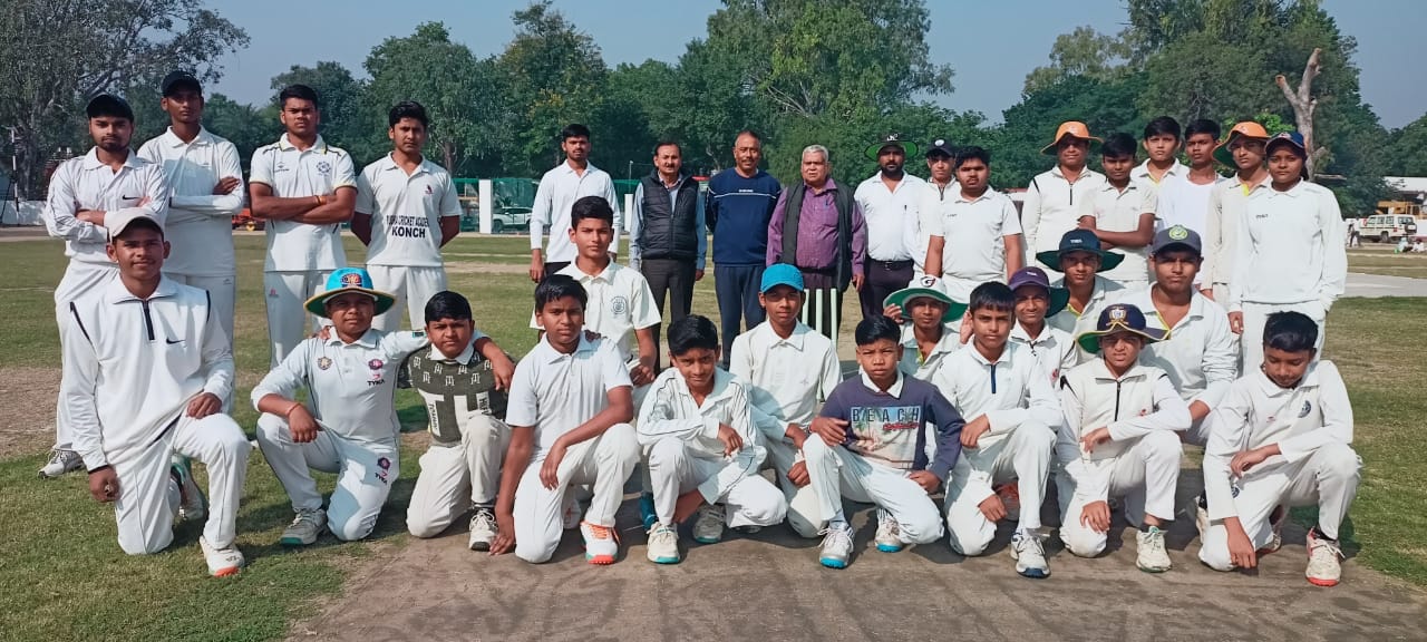 उरई। जिला क्रिकेट एसोसिएशन जालौन द्वारा आयोजित पुलिस लाइन उरई ग्राउंड पर वीरेंद्र पाल सिंह चैंपियन टूर्नामेंट में पहले दिन मैच का शुभारंभ पुलिस उपाधीक्षक उरई राजीव शर्मा ने टीम से परिचय प्राप्त कर किया, का पहला मैच औरैया और डीसीए ब्लू के बीच खेला गया पहले खेलते हुए डीसीए जालौन ब्लू ने 8 विकेट खोकर 101 रन बनाए, जिसमें आजाद द्विवेदी ने 37, यश निषाद ने 23, राम दुबे के 20 रन शामिल है, वही लक्ष्य का पीछा करने उतरी औरैया डीसीए टीम के अभिनय ने शानदार खेलते हुए 64 रन बनाए जिसमें 12 बाउंड्री शामिल है, कलम ने 10, प्रणव के 19 रन बनाए की मदद से टीम ने 15.3 ओवरों में 102 रन बना कर मैच जीत लिया।