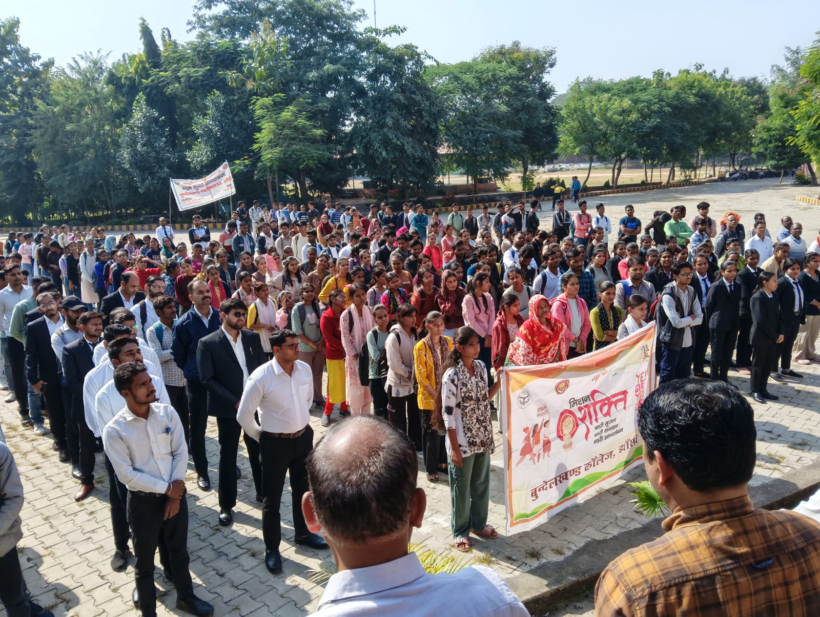 झांसी। बुन्देलखण्ड कॉलेज में यातायात माह के अन्तर्गत अरविन्द त्रिवेदी (संभागीय परिवहन अधिकारी, प्रशासनिक) तथा राकेश वर्मा (संभागीय परिवहन अधिकारी, प्रवर्तन) ने यातायात नियमों की जागरूकता के सन्दर्भ में अपनी बात रखी तथा विद्यार्थियों को शपथ दिलायी।
