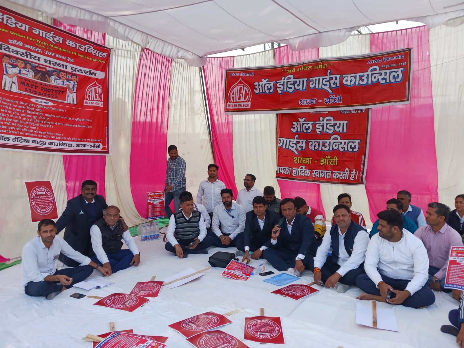 झांसी। ऑल इण्डिया गार्ड्स कॉन्सिल के केंद्रीय नेतृत्व के देशव्यापी धरना आह्वान पर झांसी में AIGC JHANSI द्वारा 12 नवंबर को चालक परिचालक लॉबी के सामने 8 सूत्री मांगों को लेकर ‘एक दिवसीय धरना’ दिया गया। धरने के उपरान्त रेल मंत्री को संबोधित मांगों का एक ज्ञापन मंडल रेल प्रबंधक को सौंपा गया।