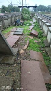 झांसी। मण्डल के ललितपुर बीना रेल लाइन पर स्थित धौर्रा रेलवे स्टेशन पर PF 2 एवं 3 के हाई लेवल करने का निर्माण कार्य दो वर्ष से अधिक समय से बंद पड़ा है जबकि प्लेटफार्म में उपयोग में लाई जाने वाली सामग्री जैसे सीमेंट के ब्लॉक सहित अन्य उपयोग में लाये जाने वाला मटेरियल पूरे प्लेटफार्म पर बिखरा पड़ा है। इससे समस्या उत्पन्न हो रही क्यों कि प्लेटफार्म पर लाइट ना होने से अँधेरा पसरा रहता है, रही-सही कसर प्लेटफार्म बने गड्ढे पूरी कर रहे हैं लेकिन रेल प्रशासन को चिंता ही नहीं है।