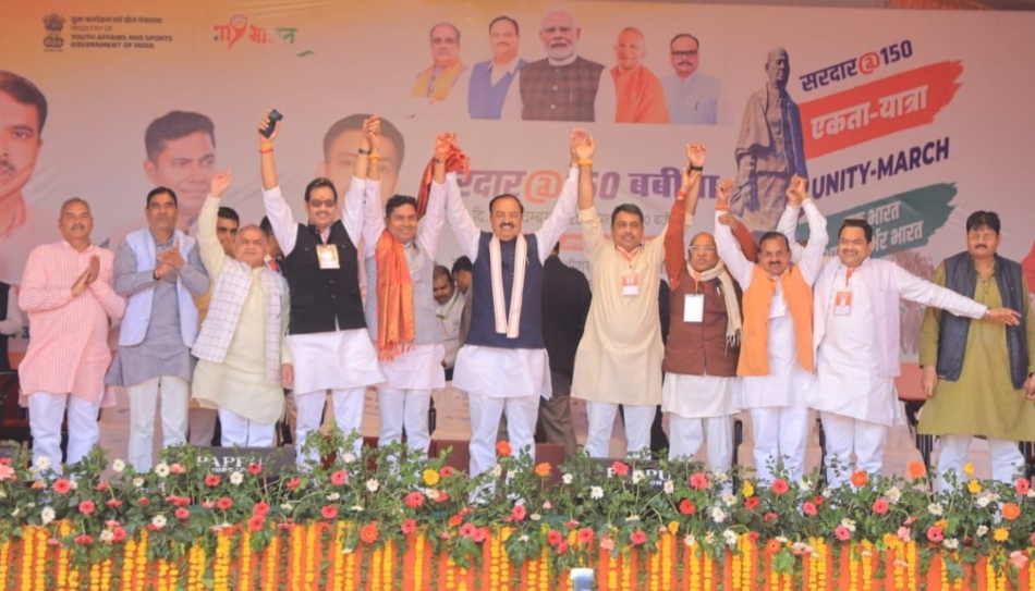 यात्रा के माध्यम से सभी ने राष्ट्र पुरुष सरदार पटेल को श्रद्धांजलि अर्पित की। कार्यक्रम में एमएलसी रमा निरंजन, रामतीर्थ सिंघल, शिक्षक विधायक बाबलाल तिवारी, दर्जा प्राप्त राज्य मंत्री हरगोविंद कुशवाहा, जमुना प्रसाद कुशवाहा, विधायक रश्मि आर्य, जवाहरलाल राजपूत, मेयर झांसी बिहारी लाल आर्य, जिला अध्यक्ष हेमंत परिहार, प्रदीप पटेल, चिरगांव नगर पालिका अध्यक्ष कुंवर राघवेंद्र सिंह, यात्रा प्रभारी मुकेश मिश्रा, ब्लॉक प्रमुख चंद्रकांतेश वर्मा, डॉ वैभव गुप्ता, संजीव श्रृंगीऋषि, प्रदीप सरावगी, अशोक राजपूत, राकेश पाल, सुधीर सिंह, उद्दयन पालीवाल, नंदकिशोर भिलवारे, जगत राजपूत, जगदीश कुशवाहा, बृजेन्द्र राजपूत, विकास कुशवाहा, उमाशंकर राजपूत, अमर सिंह कुशवाहा, राजू पाठक, देवीदास साहू, जितेन्द्र शर्मा, प्रमोद सिंह पारीछा, प्रवीण समाधिया, करूणेश बाजपेई, अमित साहू, हनी साहू, मण्डल अध्यक्ष धर्मेन्द्र अहिरवार, राजेश पाल, रूपेश नायक, रवि राजपूत, शिखा साहू, धीरज अग्रवाल, चंद्रभान सिंह दांगी, मीनू महाराज, रामलला दुबे, कुलदीप महाराज, राहुल राजपूत, मानवेन्द्र राजपूत, रविन्द्र दांगी, अरविन्द अहिरवार, राजीव वर्मा, रविन्द्र गुप्ता, प्रदीप चतुर्वेदी, निखिल कुशवाहा, अनुज सरवरिया, सौरभ पाठक, आकाश पांडेय, कमल शर्मा, अभिषेक सोनकिया, पंकज शुक्ला, संजीव अग्रवाल ‘लाला’, रोहित गोठनकर, धीरज मिश्रा, गौरव भार्गव, वरुण जैन, अमित बुधौलिया, पारस जैन, शिवा झां, अमित अवस्थी, मंगल श्रीवास्तव, रवि रायकवार, विवेक अवस्थी, अजय सिंह राजपूत, रोहन पुरोहित, वैकुंठ नारायण, कृष्णचंद्र तिवारी, चेतन ओझा, श्रीलाल अहिरवार, विनोद गौतम, कमलेश कुशवाहा, अज्जू कुशवाहा आदि बडी संख्या में जनप्रतिनिधि उपस्थित रहे। अध्यक्षता बिरजू कुशवाहा मण्डल अध्यक्ष चिरगाँव ने की। संचालनः मुकेश मिश्रा पूर्व जिलाध्यक्ष एवं विनोद नायक पूर्व जिला महामंत्री ने किया।