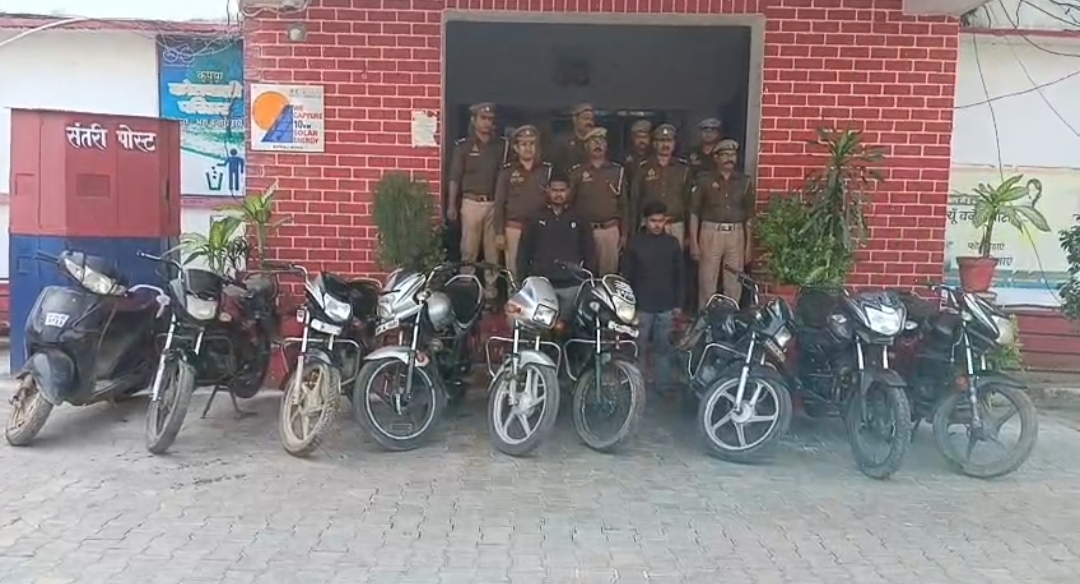झांसी। जिले में वाहन चोरों के खिलाफ चलाए जा रहे अभियान के तहत कोतवाली थाना पुलिस ने दो शातिर वाहन चोरों को दबोच कर उनके कब्जे से आठ चोरी की बाइक एक स्कूटी बरामद कर ली है।