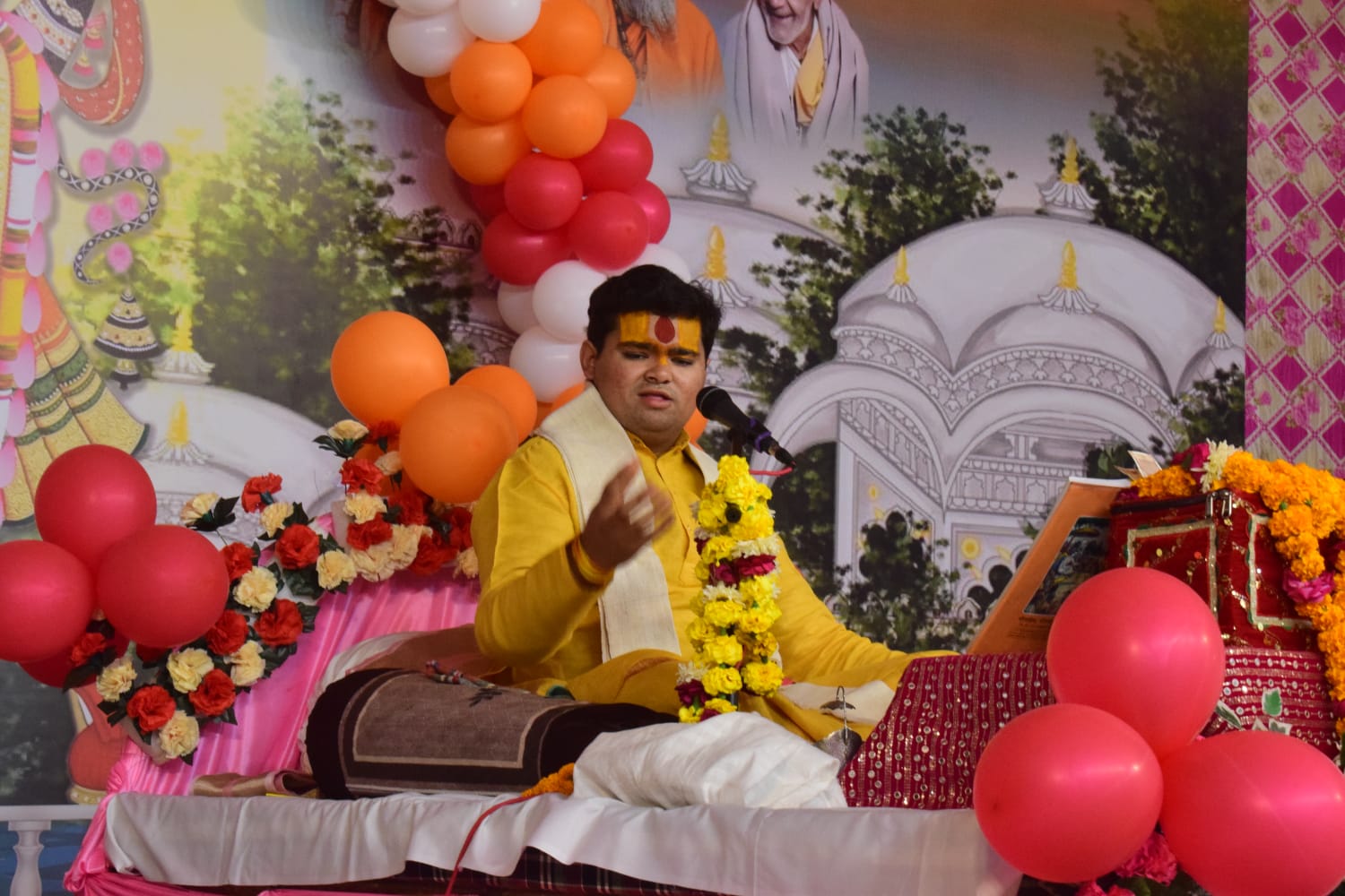 कथा व्यास ने ‘नंद घर आनंद भयौ जै कन्हैया लाल की। हाथी दीन्हें, घोडा दीन्हें और दीन्हीं पालकी।’मधुर भजन गाये जिनकी धुनें सुन श्रोता भक्ति रस में सराबोर हो गये।इससे पूर्व क्षत्रिय वंश में जन्मे प्रभु राम एवं वामन भगवान के अवतार का विस्तार से वर्णन करते हुए उन्होंने कहा कि जब जब धर्म की हानि होती है, पृथ्वी पर अधर्म बढता है तो संतों की रक्षा एवं दुष्टों का संहार करने तथा भक्तों को अपनी लीला का रसपान कराने के लिए प्रभु का प्राकट्य होता है।