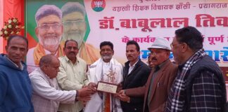 चतुर्थ श्रेणी राज्य कर्मचारी संगठन द्वारा शिक्षक विधायक बाबूलाल तिवारी का सम्मान