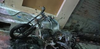 #Jhansi गली में खड़ी बाइक में आग लगा कर फूंका