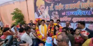 Jhansi सांसद ने 18 किलो की फूल माला पहनाकर दी शुभकामनाएं